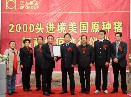 正大集團(tuán)舉行2000頭進(jìn)境美國原種豬隔離檢疫放行儀式