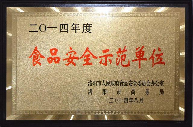 2014年9月3日下午,洛陽市召開創(chuàng)建食品安全示范單位現(xiàn)場推進會,洛陽市政府領(lǐng)導(dǎo)、相關(guān)委局負責(zé)人及食品安全示范單位申報企業(yè)參加了推進會,會上授予洛陽正大食品有限公司“食品安全示范單位”。