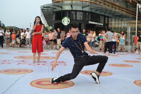 活動時長大約30分鐘,首先快閃人員在王府井南昌路店門口廣場中央集合,穿戴著簡單大方、整齊利索的衣物四處游走在人群中。時間一到,音樂響起,歌手慢慢走近中央,一首振奮人心的“我和你”拉開整個活動的序幕,瞬間引起了在場所有人群的關(guān)注。緊接著舞蹈演員閃亮上場,展開了一場激情澎湃的機(jī)械舞,帶動現(xiàn)場觀眾情不自禁參與到表演中來,此時人流迅速聚攏,引起圍觀。然后正大食品有限公司員工身著公司服裝,唱著正大集團(tuán)《愛是正大無私的奉獻(xiàn)》一起出現(xiàn)在廣場中央,隨后幾段歌舞串燒將現(xiàn)場氣氛推向***,在觀眾意猶未盡之時迅速閃開在人群之中。活動過程中穿插進(jìn)行了分發(fā)公司宣傳材料、食品安全知識宣傳單,現(xiàn)場觀眾品嘗了洛陽正大豬肉調(diào)理品、醬鹵產(chǎn)品及集團(tuán)現(xiàn)代食品。