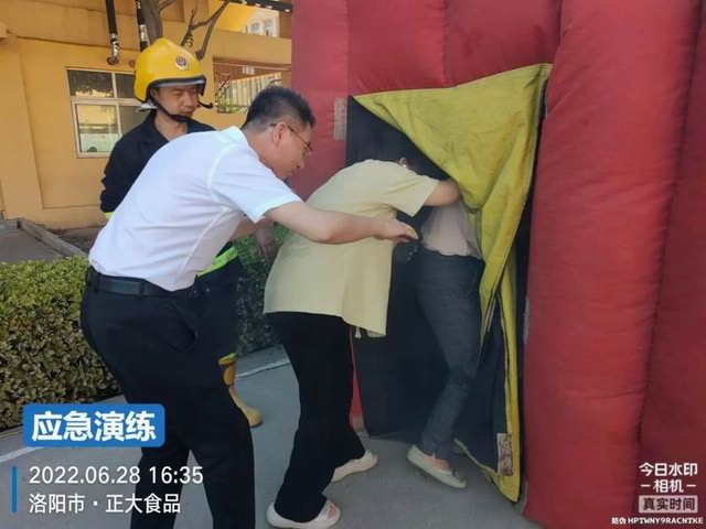 車(chē)間、外圍員工逐個(gè)體驗(yàn)應(yīng)急逃生帳篷項(xiàng)目