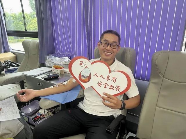參加獻(xiàn)血活動的隊(duì)伍中,既有多次無償獻(xiàn)血的“老將”,也有初次上陣的“新兵”,還有從崗位上剛下班生產(chǎn)工人。大家臉上的微笑飽含了對生活的無比熱愛,伸出的手臂感動著每一個人。一股股鮮紅的血液流向血袋,他們獻(xiàn)出的不僅是鮮血,更是一份份對生命的祝福。他們用通過自己的實(shí)際行動,為患者架起了生命的橋梁,澆灌了生命的希望。