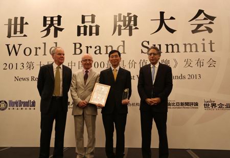 6月26日,由世界品牌實(shí)驗(yàn)室、世界經(jīng)理人雜志等機(jī)構(gòu)主辦的世界品牌大會(huì)暨2013年第十屆《中國500***具價(jià)值品牌》發(fā)布會(huì)在北京東方君悅大酒店召開。會(huì)議發(fā)布了2013第十屆《中國500***具價(jià)值品牌》排行榜,正大集團(tuán)以208.86億元的品牌價(jià)值位居第88位。美國耶魯大學(xué)管理學(xué)院萊維·多爾教授(右一)、法國歐洲工商管理學(xué)院瓊·克勞德·拉里齊教授(左二)以及英國牛津大學(xué)商學(xué)院斯蒂芬·沃格教授(左一)為正大集團(tuán)頒獎(jiǎng)。董事長(zhǎng)辦公室(北京)楊海浩總裁(右二)代表集團(tuán)接受獎(jiǎng)杯及證書。